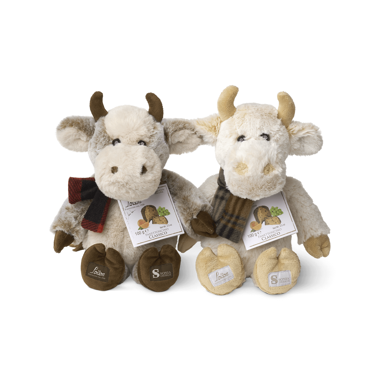 Panettone jest pakowane ręcznie w pluszową zabawkę - w tym roku jest to krówka w kolorze czekoladowym.