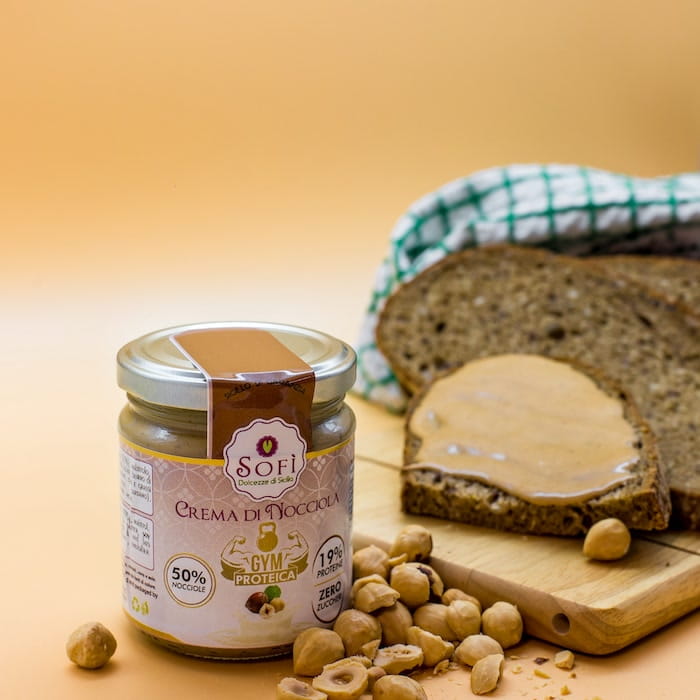 Wysokobiałkowy krem z orzechów laskowych, bez dodatku cukrów. Mowa o kremie do smarowania na bazie izolatu białka serwatkowego. Idealny do pysznego śniadania zgodnego ze zdrowym i zrównoważonym stylem życia z odpowiednią ilością kalorii i białka. W jego składzie jest aż 50% orzechów laskowych i 19% białka.